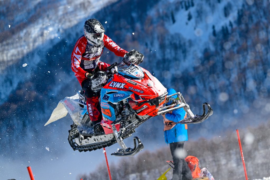 Sahlström kept clean out front, working through traffic well, with some of the biggest launches off the finish line downhill jump. Winner by ten seconds, the sight of Pihlaja in fourth must have been heartening. Hoelsaeter dropped to ninth at the close, but Aberg kept fifth ahead of Finnish rider Topi Rinne on his Lynx sled.