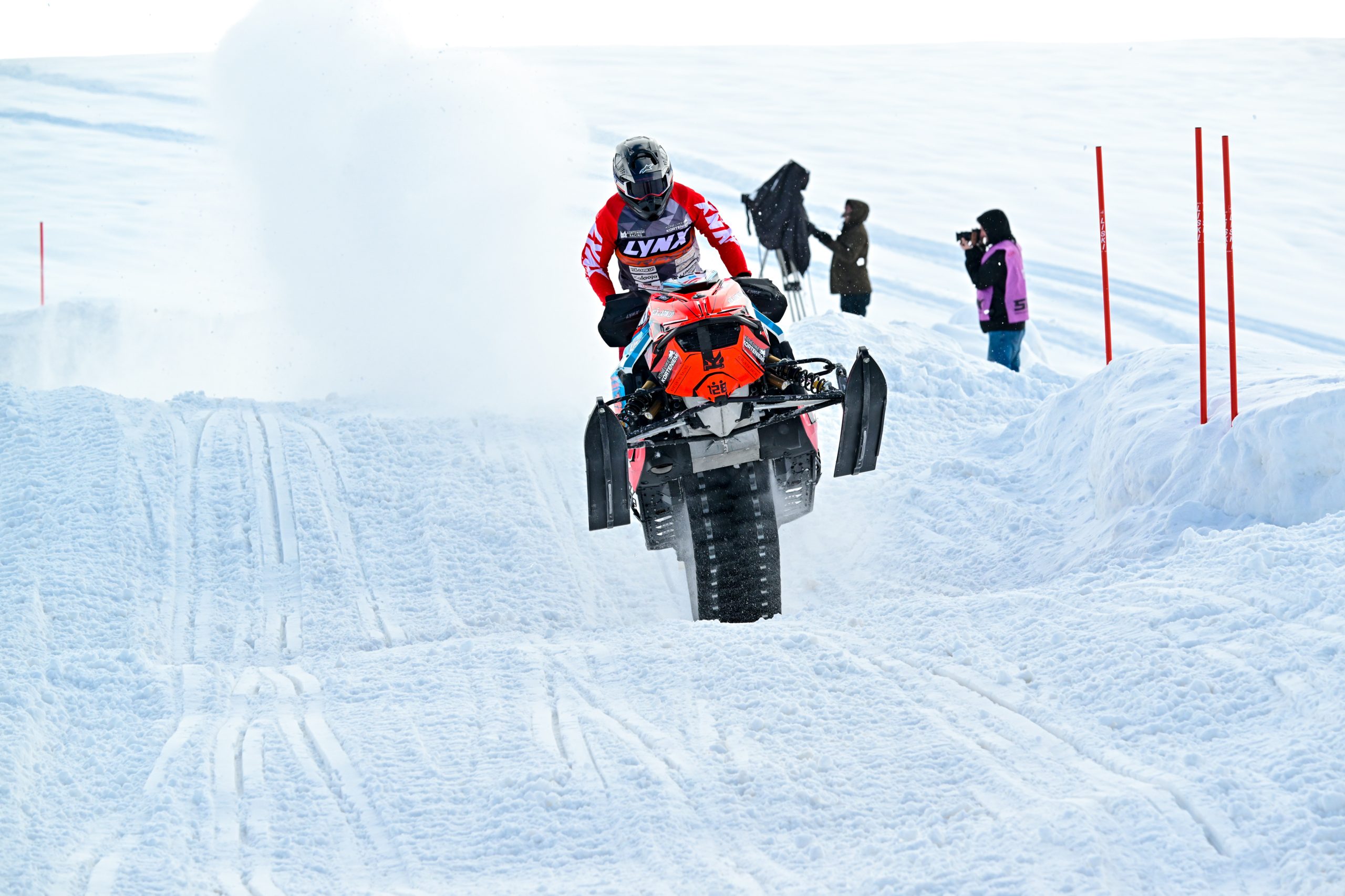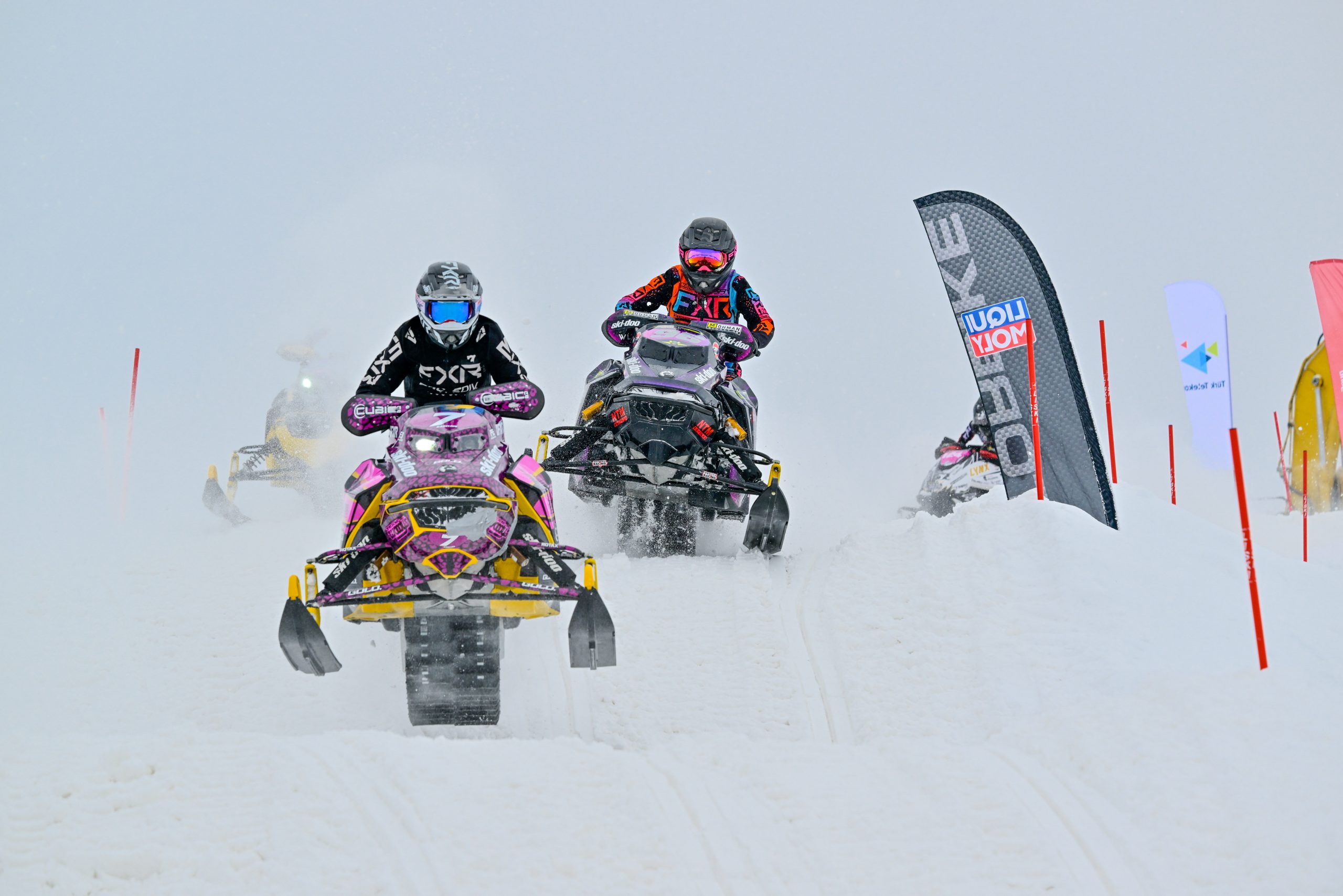 With the ice deteriorating lap by lap from underneath their sleds due to the conditions, the pack was led into turn one by 2023 World Champion Pihlaja who took control from the outset, and marched away from the pack after taking the Holeshot. Sunday’s winner Olle Sahlström gave chase briefly, but the Swede had difficult visibility to contend with as snow quickly built up on the riders’ goggles, freezing into ice in the sub-zero conditions! The series leader come home just over eight seconds behind Pihlaja.