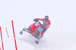 With the ice deteriorating lap by lap from underneath their sleds due to the conditions, the pack was led into turn one by 2023 World Champion Pihlaja who took control from the outset, and marched away from the pack after taking the Holeshot. Sunday’s winner Olle Sahlström gave chase briefly, but the Swede had difficult visibility to contend with as snow quickly built up on the riders’ goggles, freezing into ice in the sub-zero conditions! The series leader come home just over eight seconds behind Pihlaja.